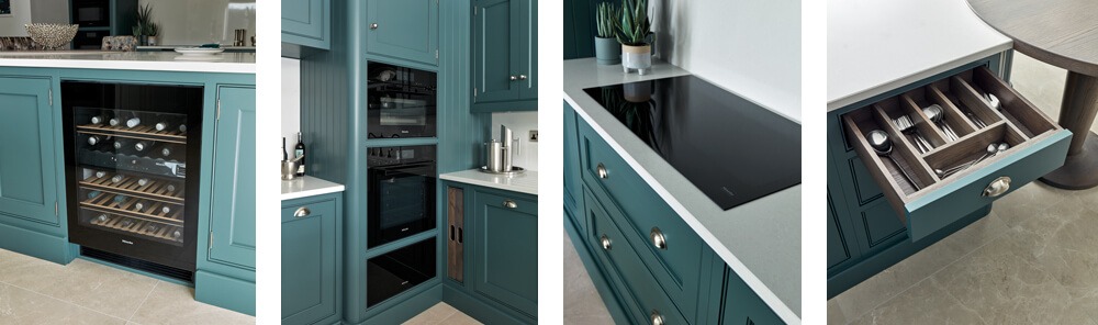 Featuring in-frame cabinetry, our Summerville collection exudes simplicity, balance, and English charm. Inspired by Shaker design principles, this collection transcends conventional norms by replacing sharp edges with graceful curves and intricate woodwork details. Complemented by tongue and groove panelling for added texture and curved worktop edges to impart a softened aesthetic, each element contributes to the timeless beauty of this considered collection.