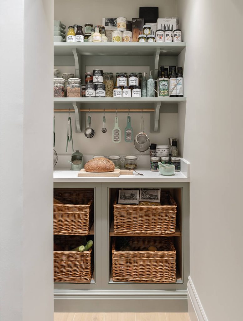“Traditionally placed downstairs in large English country homes and originally named the ‘butler’s pantry’, the walk-in pantry was used to store cooking essentials, fine silverware, and valuable ingredients,” says Tom Howley, our Creative Design Director.