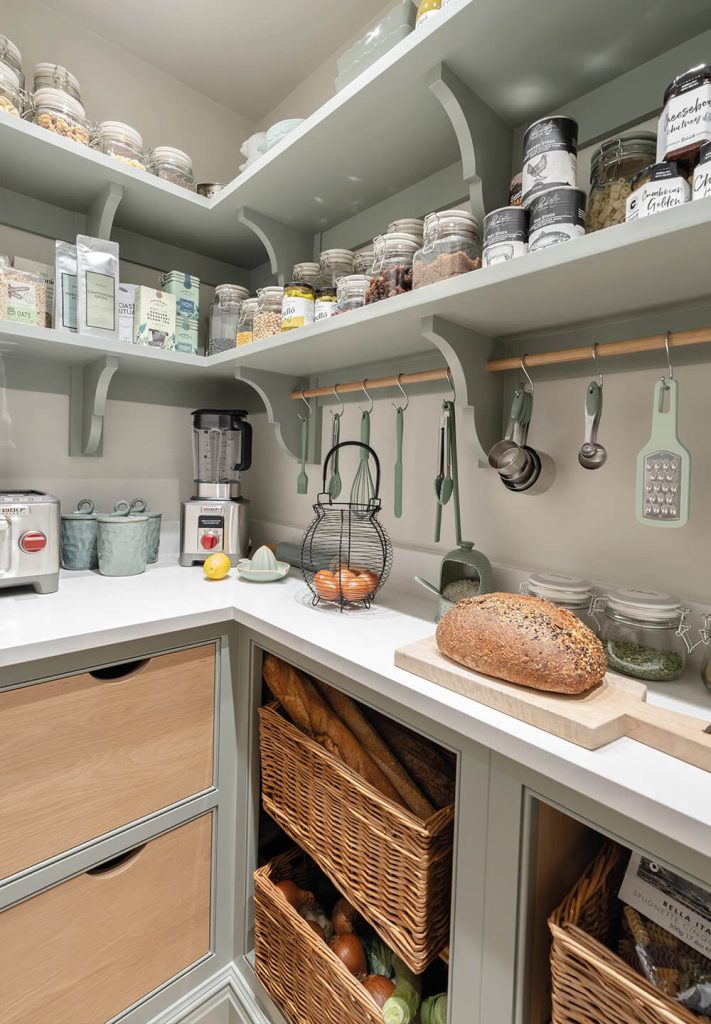 “A walk-in pantry allows everything to be visible at once and can even accommodate a small additional work surface, for table top appliances, a bread board, bread bin, eggs, or discreetly hiding a birthday cake,” Tom explains. “As soon as you set foot inside, you should be able to grab what you need with ease.”