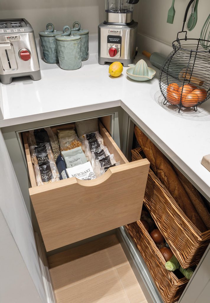 Your walk-in pantry should be a natural extension of the kitchen with a mixture of shelving, drawers, and work surface space. Positioning, ventilation, and temperature are key to ensuring food longevity.Tom Howley, Creative Design Director.