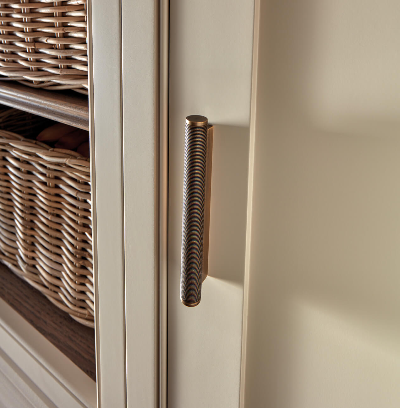 The selection of furniture for this walk-in pantry is carefully curated, ensuring both functionality and aesthetic appeal. From the elegant neutral paint colour that sets the tone for the space, to the meticulously chosen handles, every element is thoughtfully considered. With ample storage space, you can keep your kitchen organised and clutter-free. Store your essentials away from the main work area, making meal preparation a breeze.